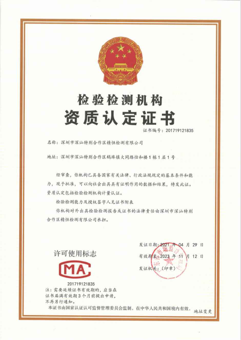 公司现拥有检验及办公场所约2150m²,公司注册资金2000万元,公司拥有约600多台套精良的检测仪器和设备,有健全的各项规章制度,有明确的岗位责任制和完善的管理体系,拥有一支作风严谨,协作有力的高素质检测团队,具备一流的检测能力。公司现有工程技术人员35人,其中具有高级技术职称4人,中级技术职称16人,初级技术职称3人,检测人员都取得了国家或地方主管部门颁发的资格证书。